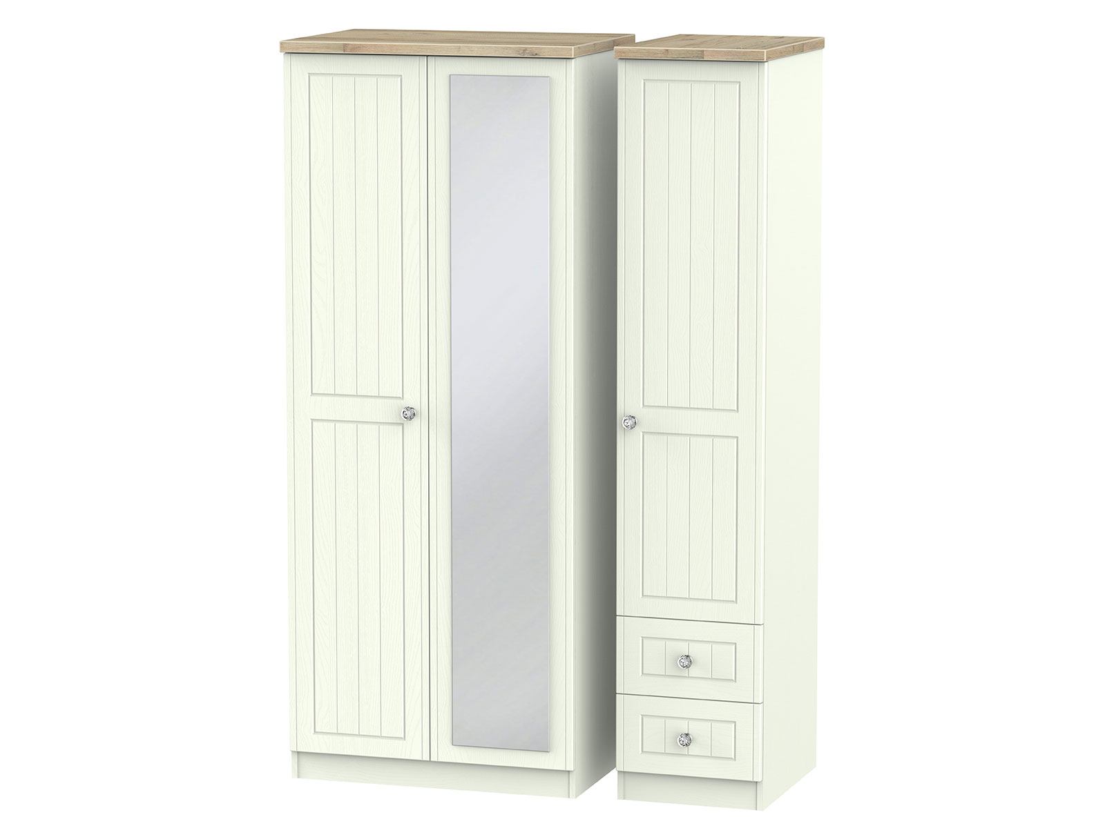 -11%This full height triple 3 door wardrobeis perfect for any bedroom when a normal wardrobe is just not large enough. Also features 2 narrow storage drawers for added practicality and a single full height mirrored door.