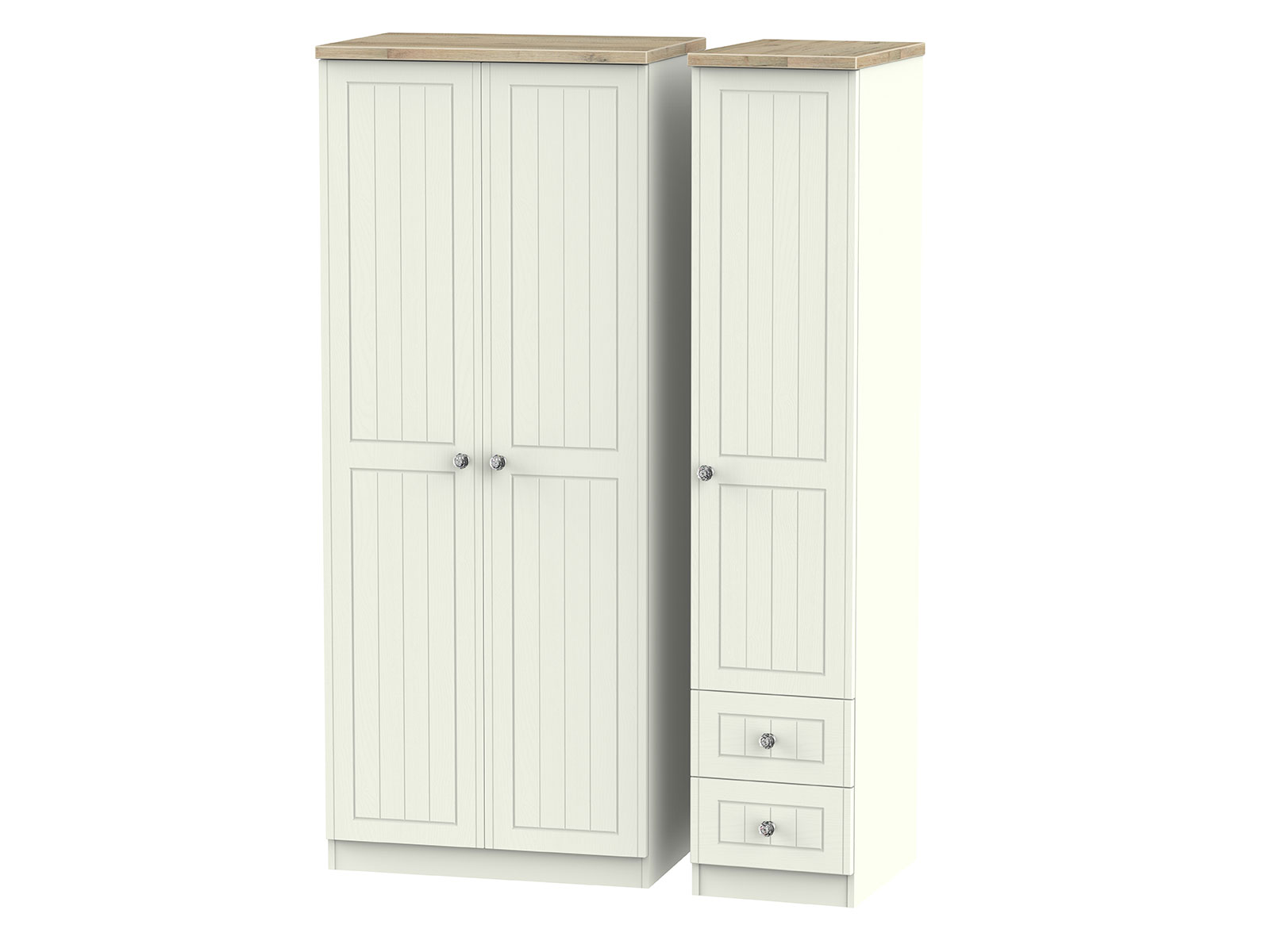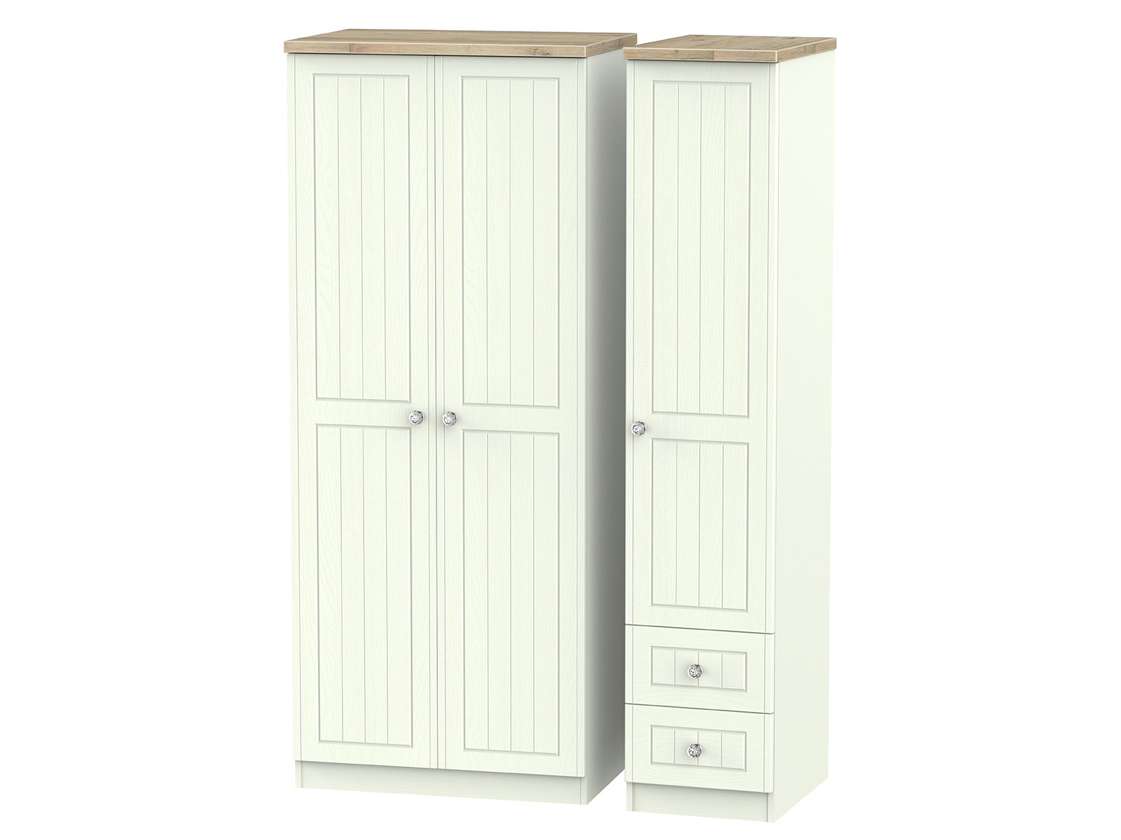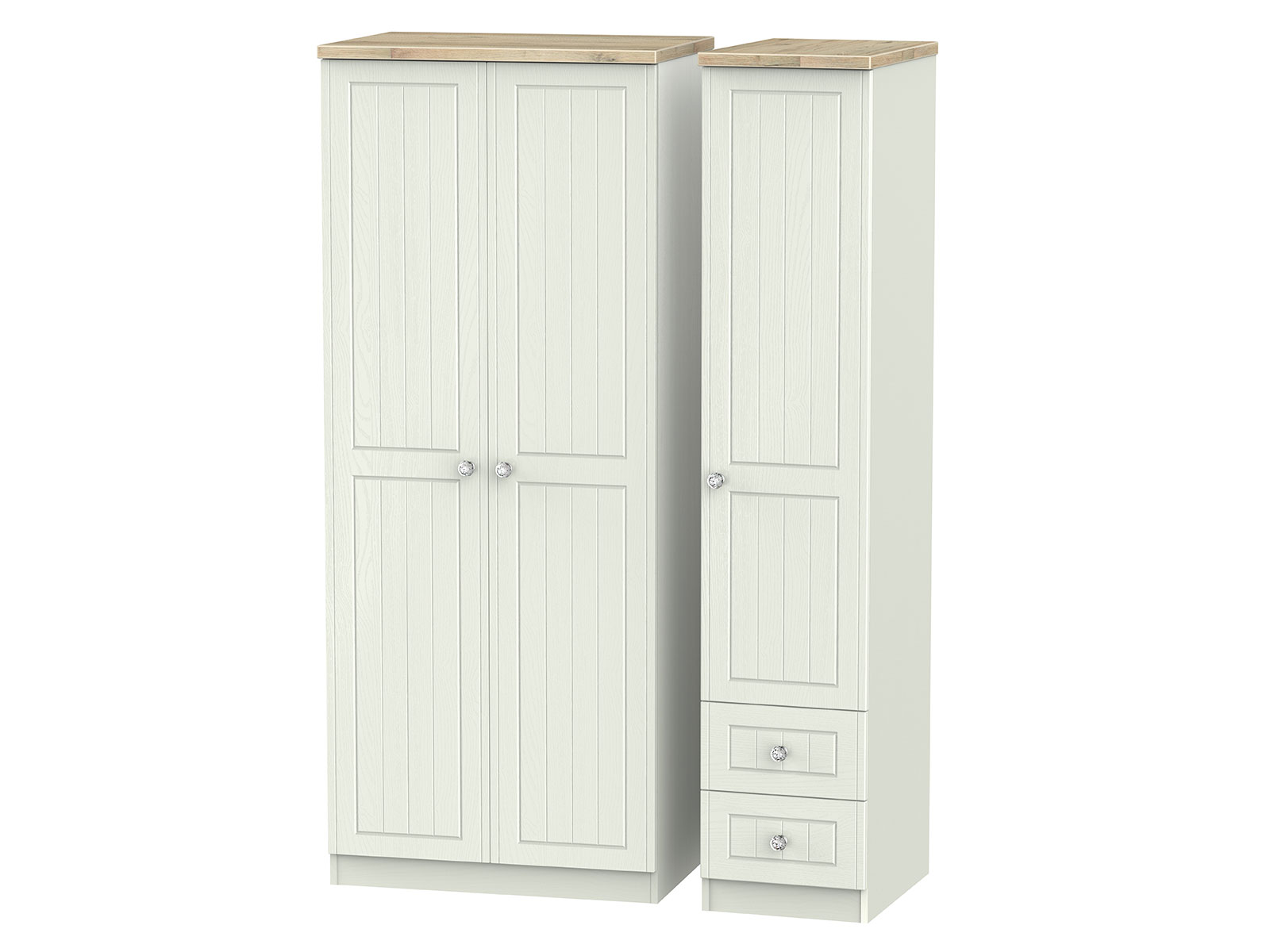 The classic, elegant Rome range is available in a range of durable scratch resistant painted wood finishes with natural wooden tops. With stylish crystal handles on all doors and drawers. All drawers come with long lasting metal drawer runners and a linen effect interior.