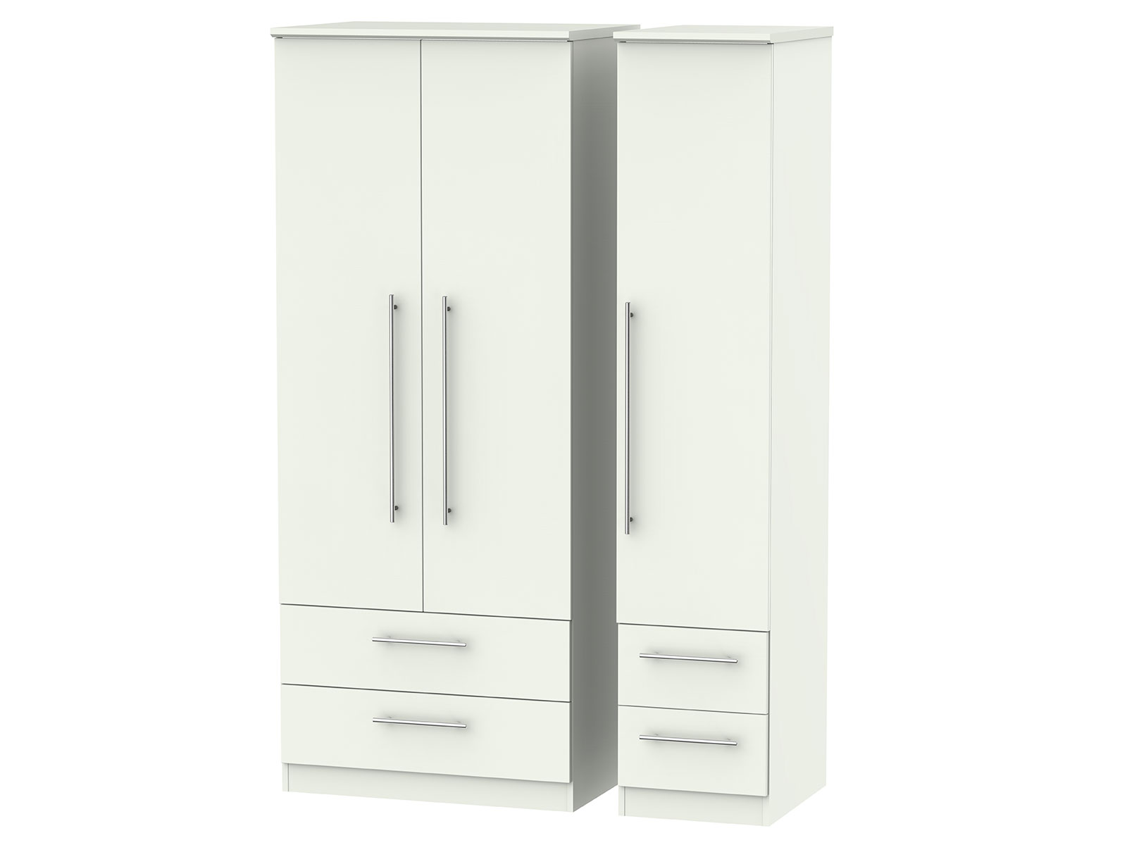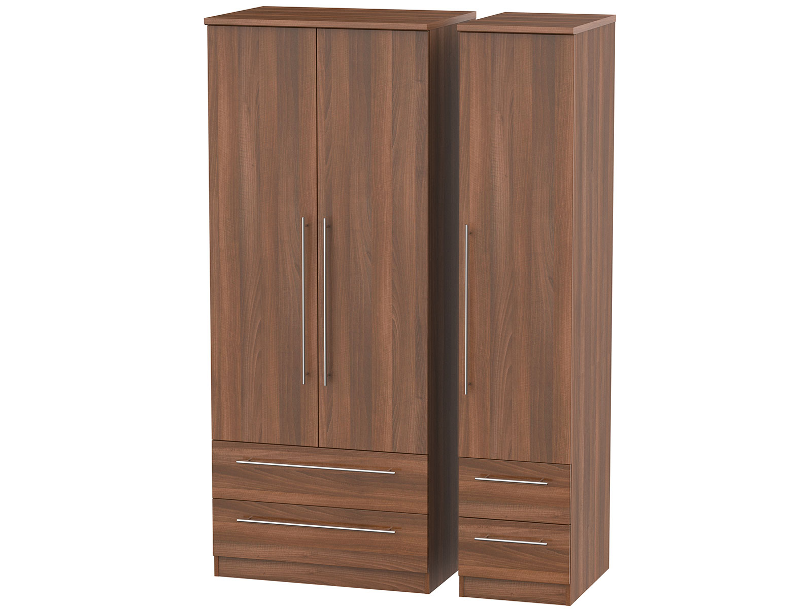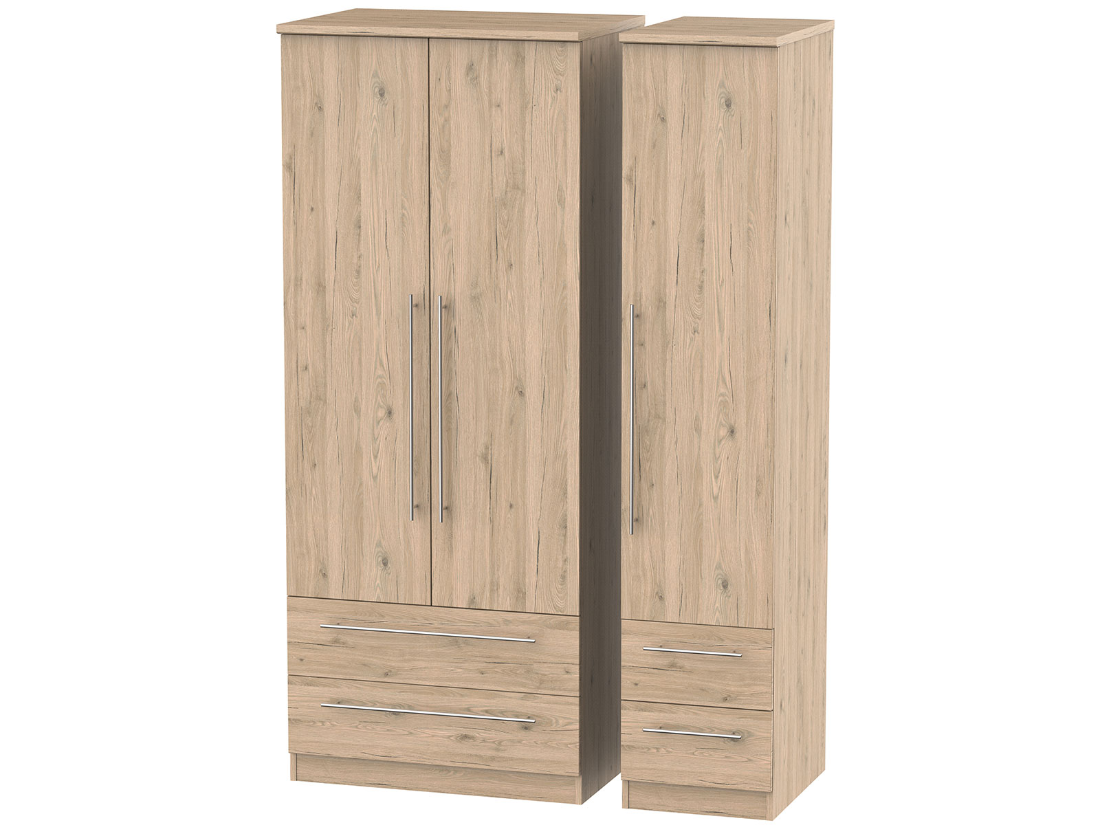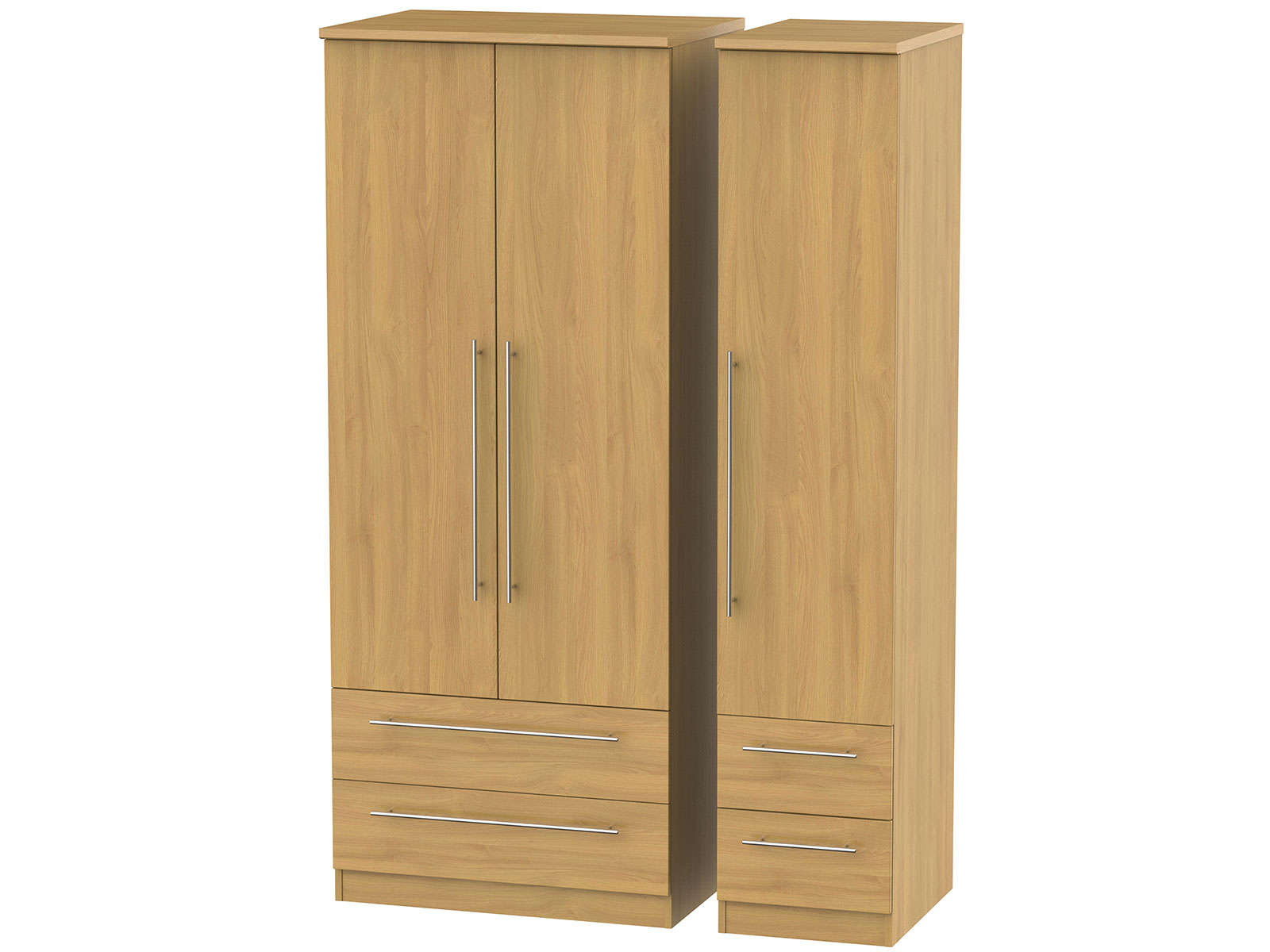 This full height triple 3 door wardrobeis perfect for any bedroom when a normal wardrobe is just not large enough. Also features 2 narrow and 2 wide storage drawers for added practicality.